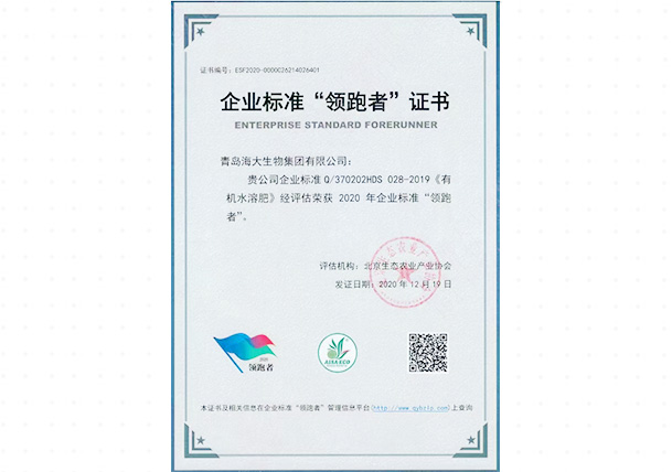 企業(yè)標(biāo)準(zhǔn)"領(lǐng)跑者"證書