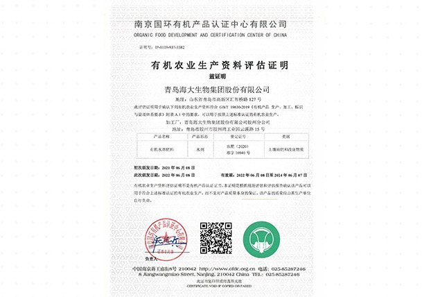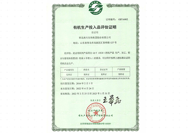 有機(jī)農(nóng)業(yè)生產(chǎn)資料評(píng)估證明