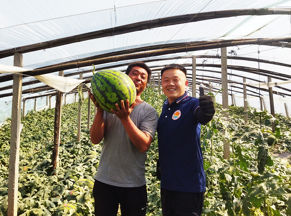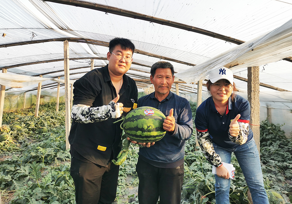 本屆賽前,海大生物集團(tuán)濰東省區(qū)團(tuán)隊(duì)人員為確保參賽的嚴(yán)格、公開、公平、公正,分頭到每戶西瓜種植大棚中親自采摘瓜農(nóng)最滿意的西瓜到海狀元品牌專賣店。與海狀元用戶一起抱著數(shù)十斤重的大西瓜,我們的市場服務(wù)人員心里也是樂開了花。